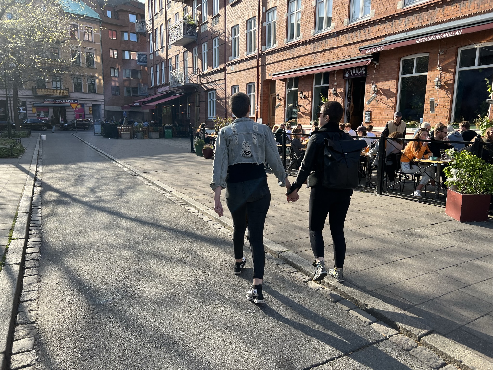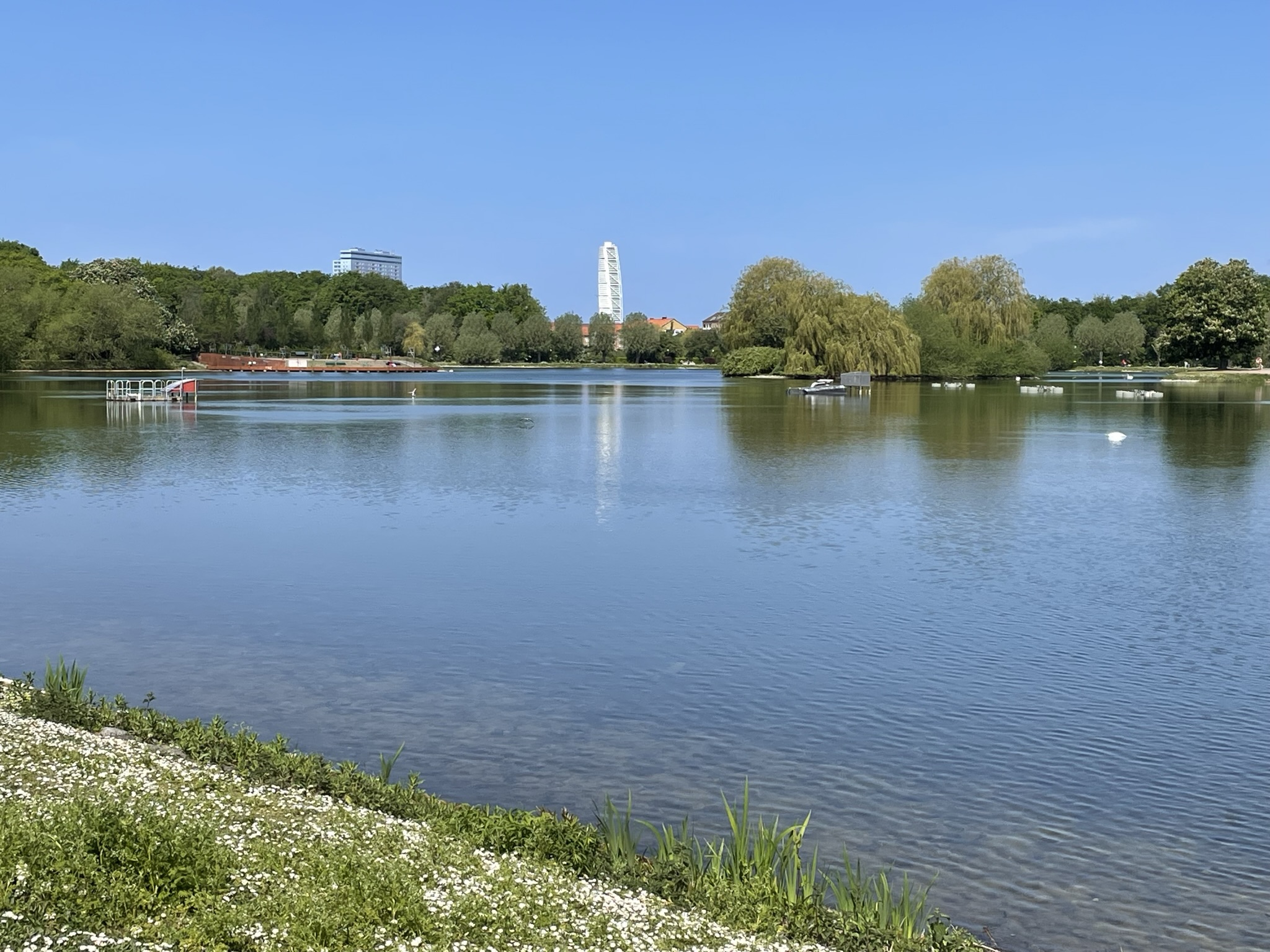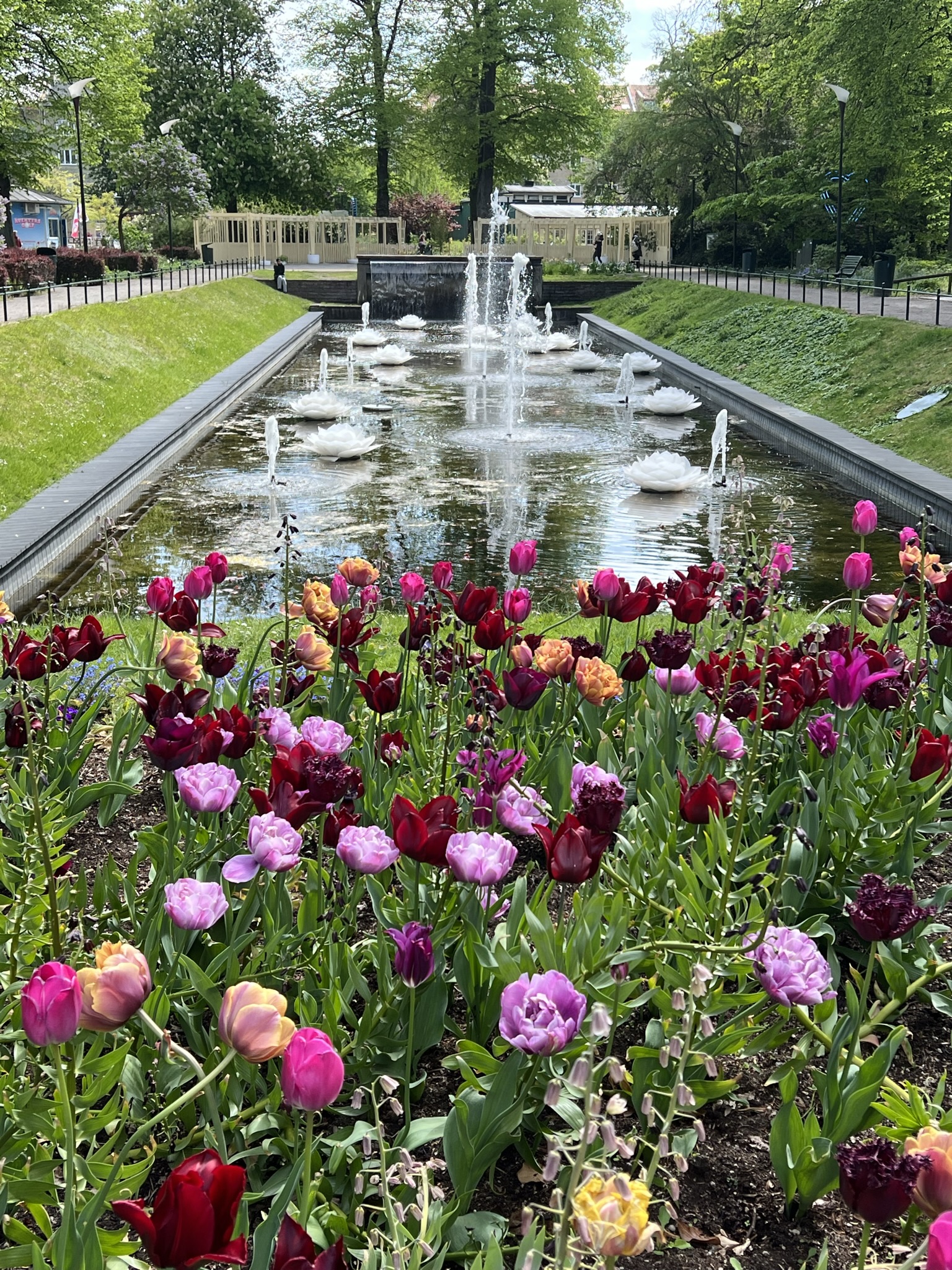 Solen strålade och det var kanonväder om än något blåsigt på förmiddagen. Vi tog oss med apostlahästarna in mot centrum via Folkets Park. Och den parken är verkligen Folkets. Barnfamiljer och vuxna om vartannat men som alla njöt av sol och värme. Här i Skåne har våren kommit längre än i Stockholm. Just nu blommar syren och tulpaner för fullt och det är sådär skirt grönt i träden. Absolut den vackraste tiden på våren, enligt mig i alla fall!