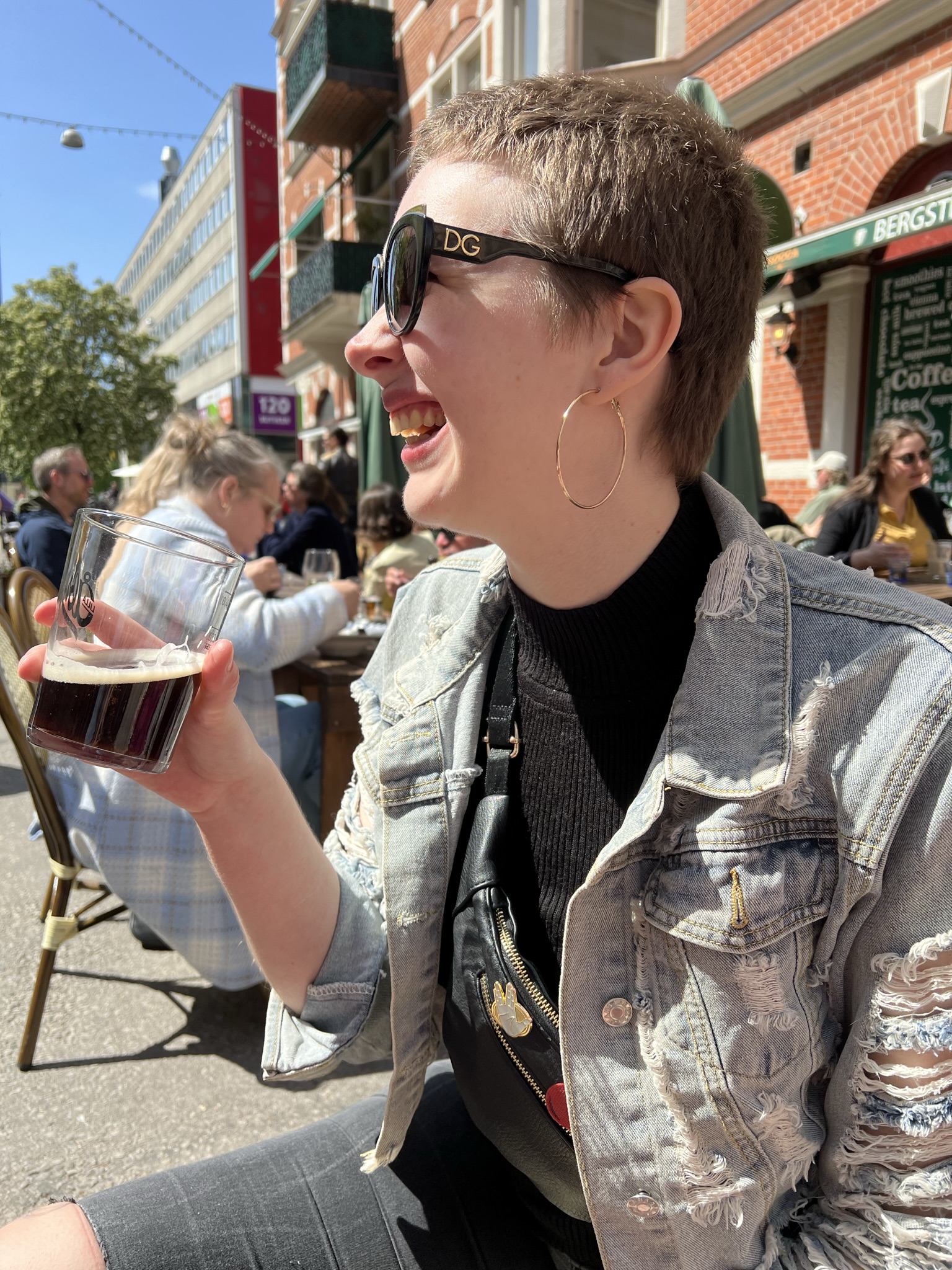 Vår färd gick via Triangeln en galleria i centrum (vi hade visst missat att få med såna där trivialiteter som varsin tandborste och en tandkräm) vidare in i Pildammsparken, ännu en av Malmös fina parker. Efter den ansträngande inköpsrundan och promenaden i parken tog Lina oss till en mysig uteservering som hon och Hanna brukar sitta och mysa på. De serverade god, kall öl och det satt fint!