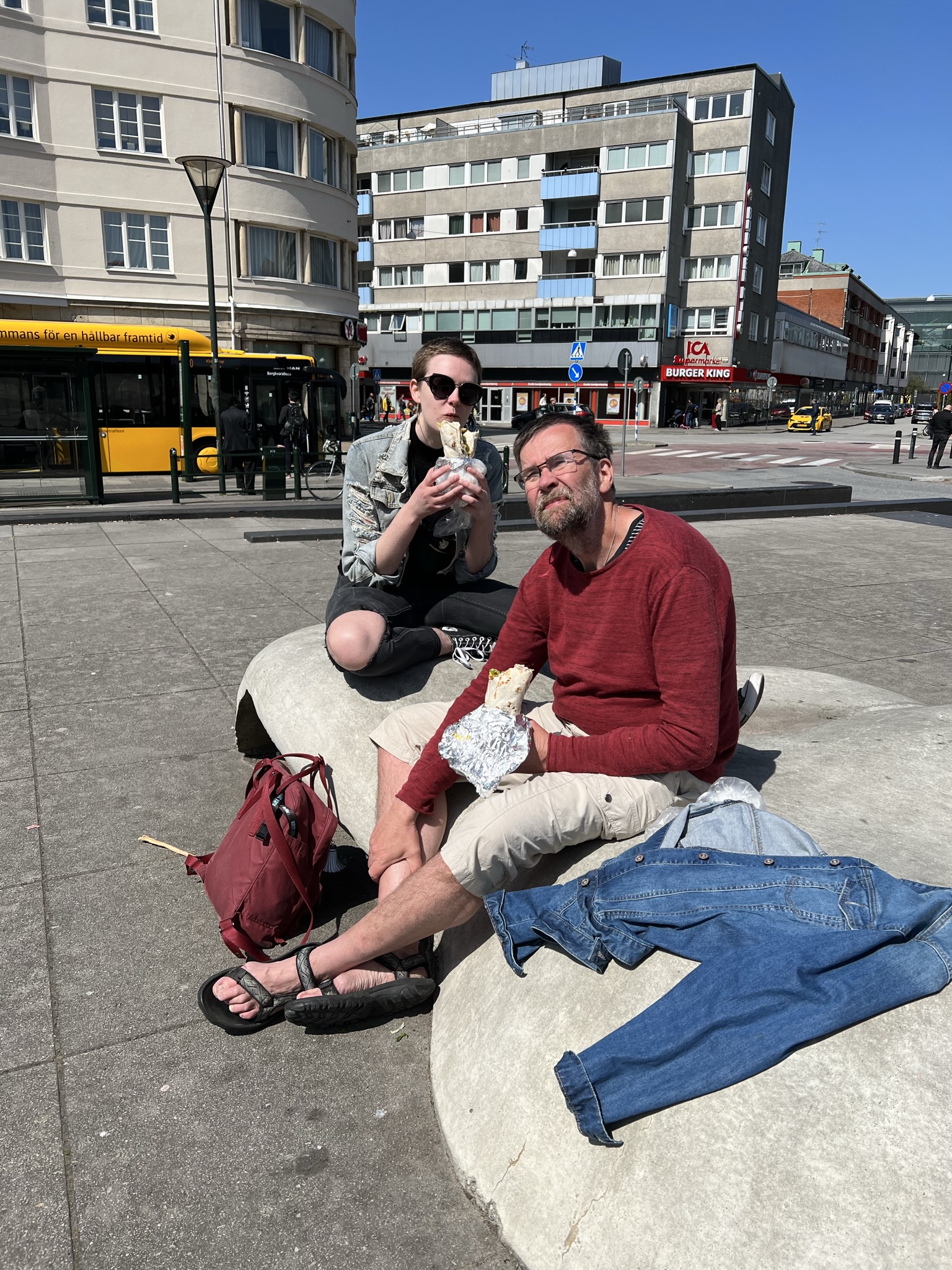 Falafelrulle från Stans bästa Falafelrulleställe intas på Värnhemsstorget.