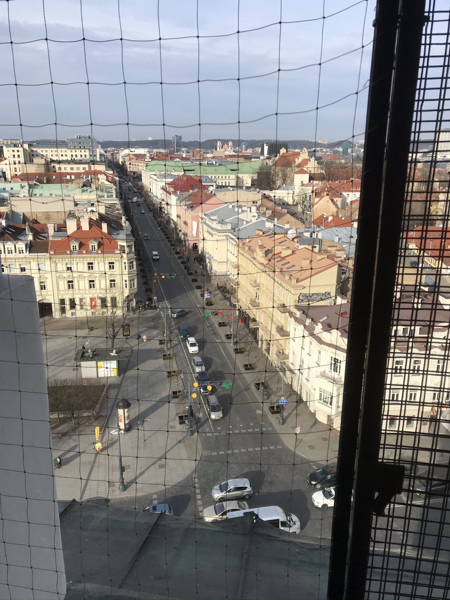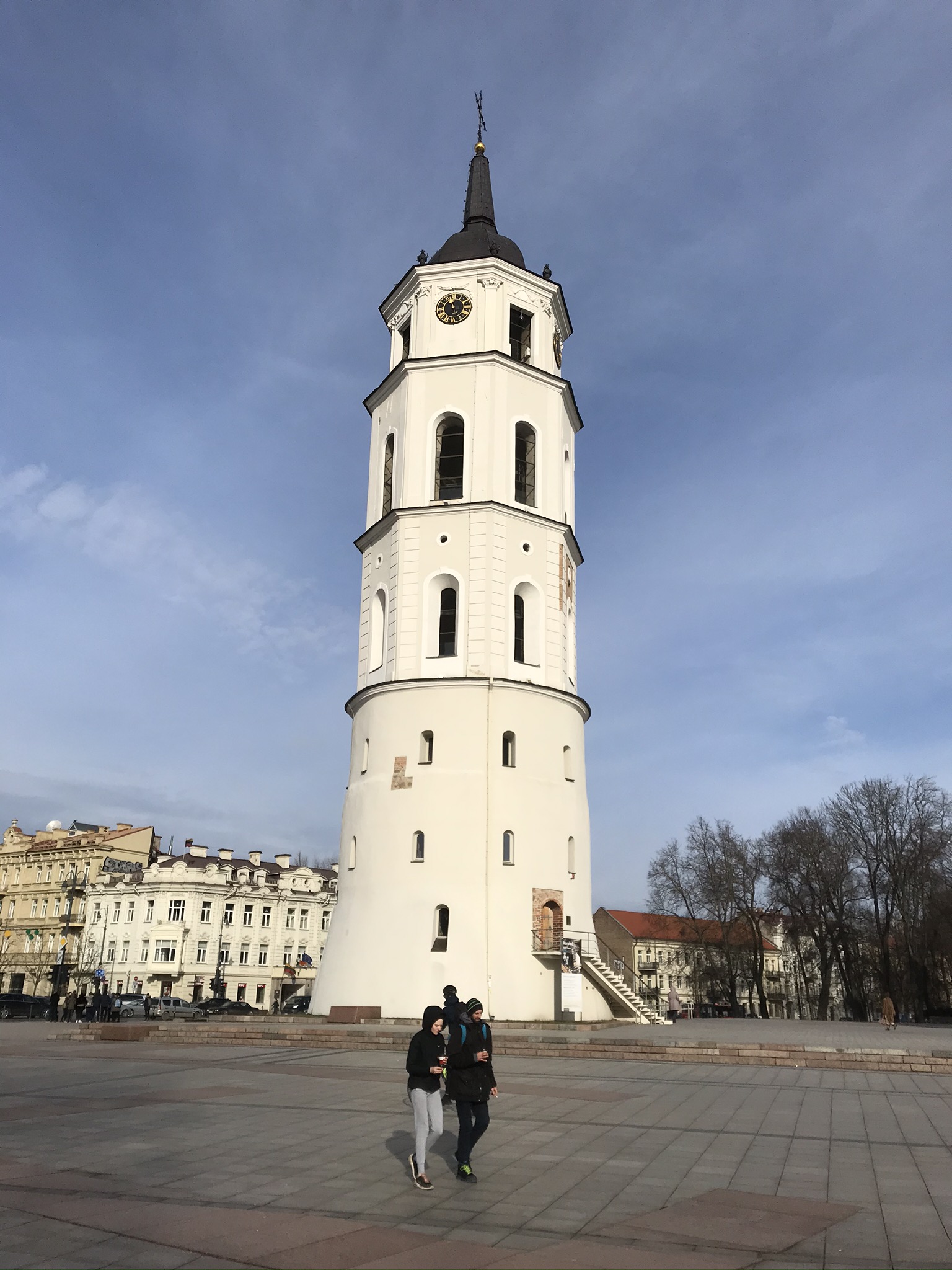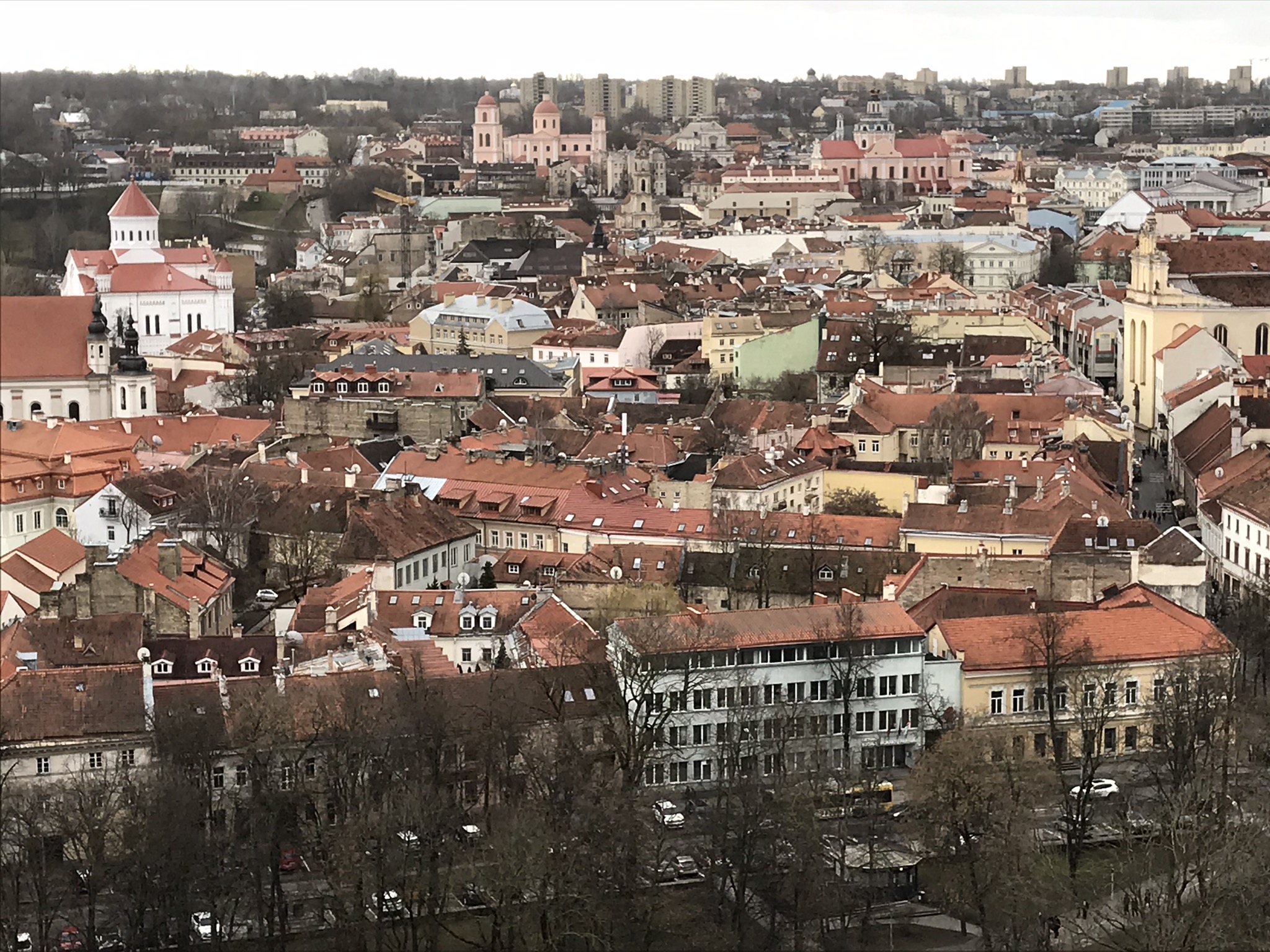 Klocktornet som står lätt lutande utanför var öppet så vi tog oss även hela vägen upp till de gamla klockorna via gamla rangliga trätrappor. Den lilla klockan slår varje kvart och den stora slår varje hel timme. Även den lilla klockan låter ordentligt om man står i närheten kan jag lova! Längst upp var det en fantastisk utsikt över Vilnius åt alla håll. Det är en större stad till ytan än man kan tro.