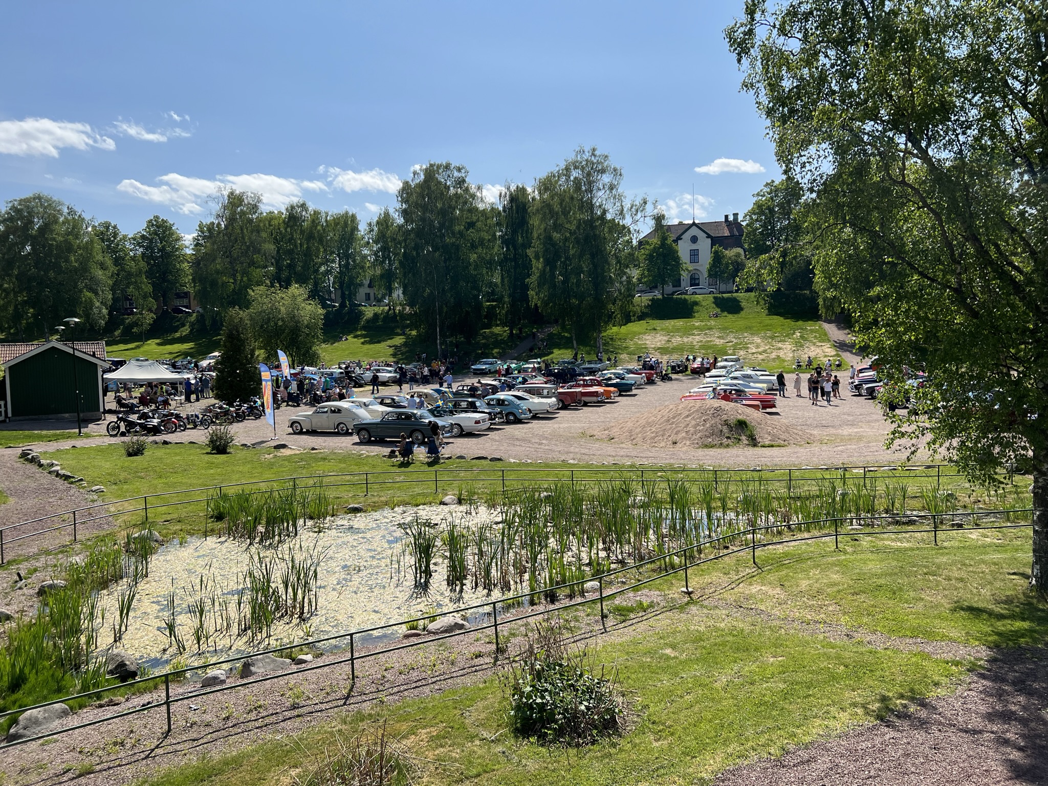 På eftermiddagen tog vi oss in till Hedemora igen. Vi gick en kort promenad mot Sveaparken där en massa gamla bilar samlats. Det var otroligt många fina och blänkande bilar som mötte oss när vi kom ner i parken. Undrar hur många timmars arbete som stod samlat där på planen egentligen.