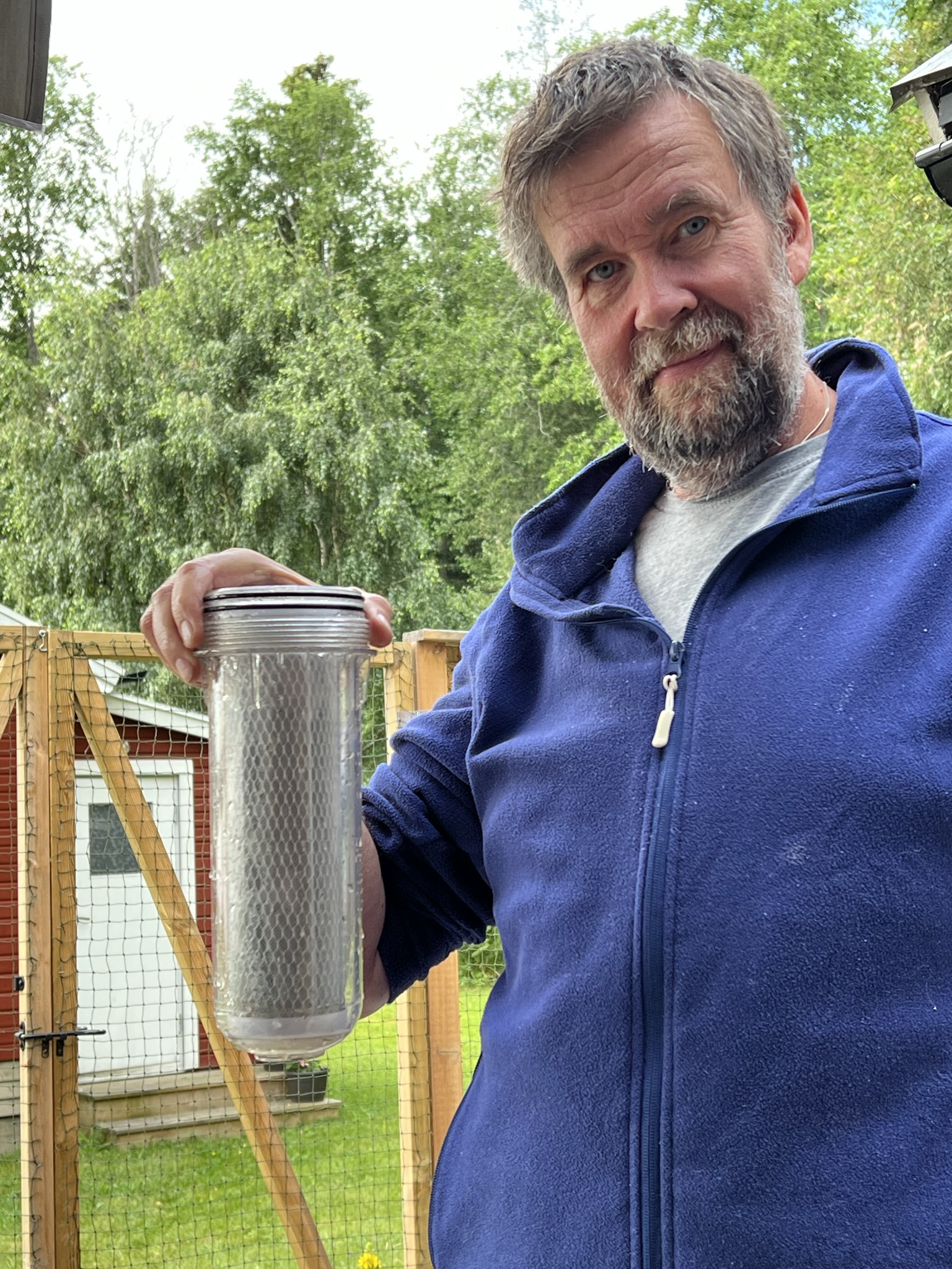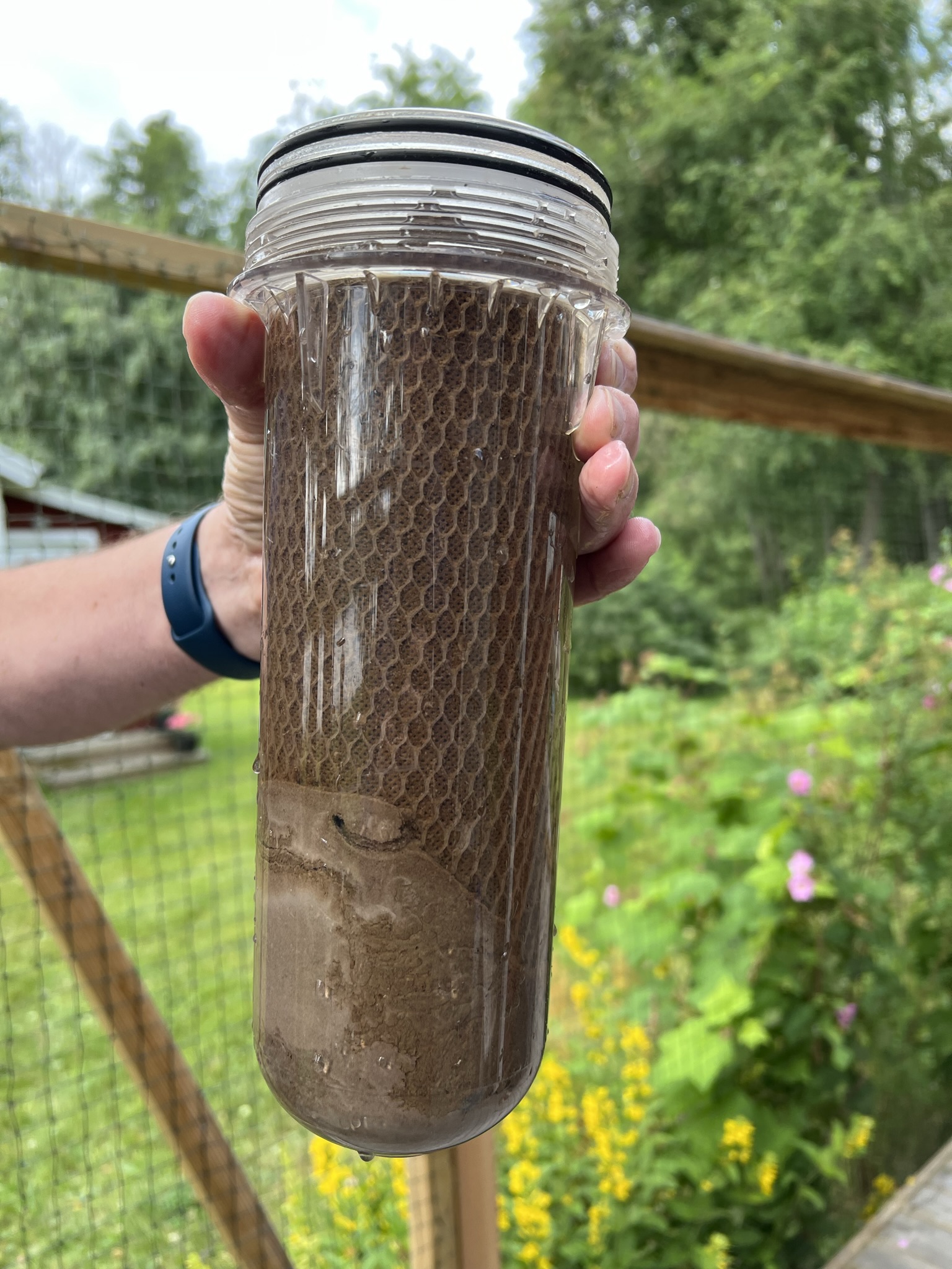 Vi åt finfrukost och mös i största allmänhet innan jag blev lite rastlös. Det första jag gjorde var att tömma och göra rent vattenfiltret. Vi tar diskvatten från Dalälven och trots att vi ser till att vattenslangen flyter en bit från botten tar den med sig fin sand och lera med sig upp. På Marias inrådan monterade vi ett vattenfilter när vi renoverade köket och slipper på så sätt att fylla varmvattenberedare och kranar med lera och annat. Hon är smart min fru!