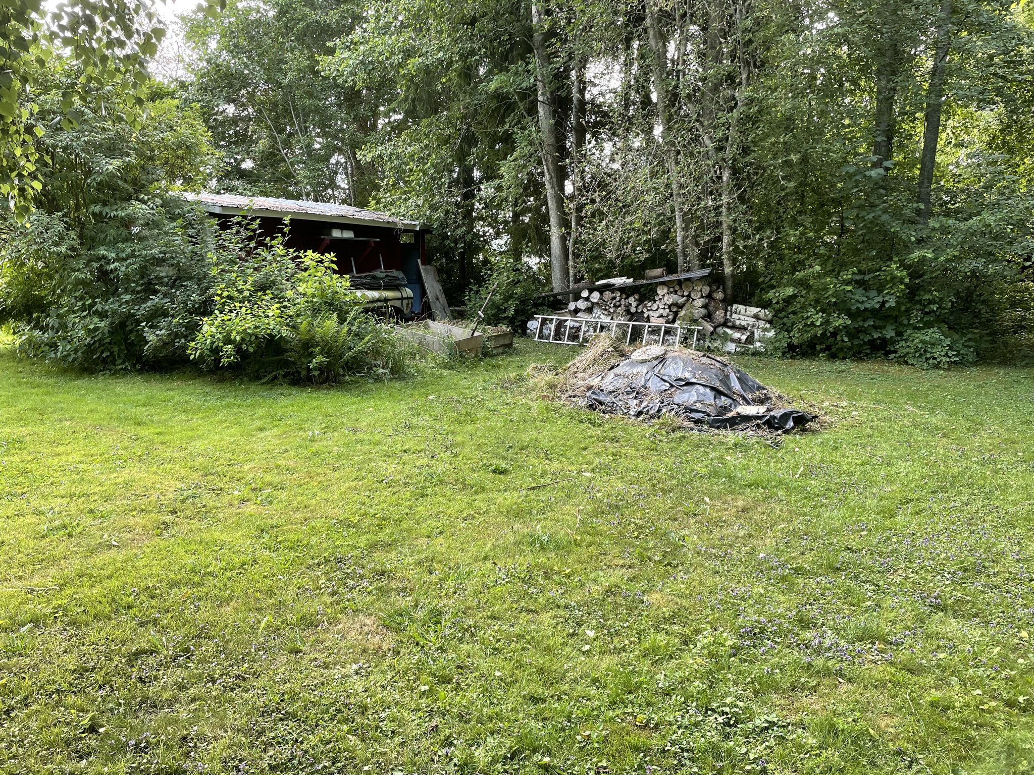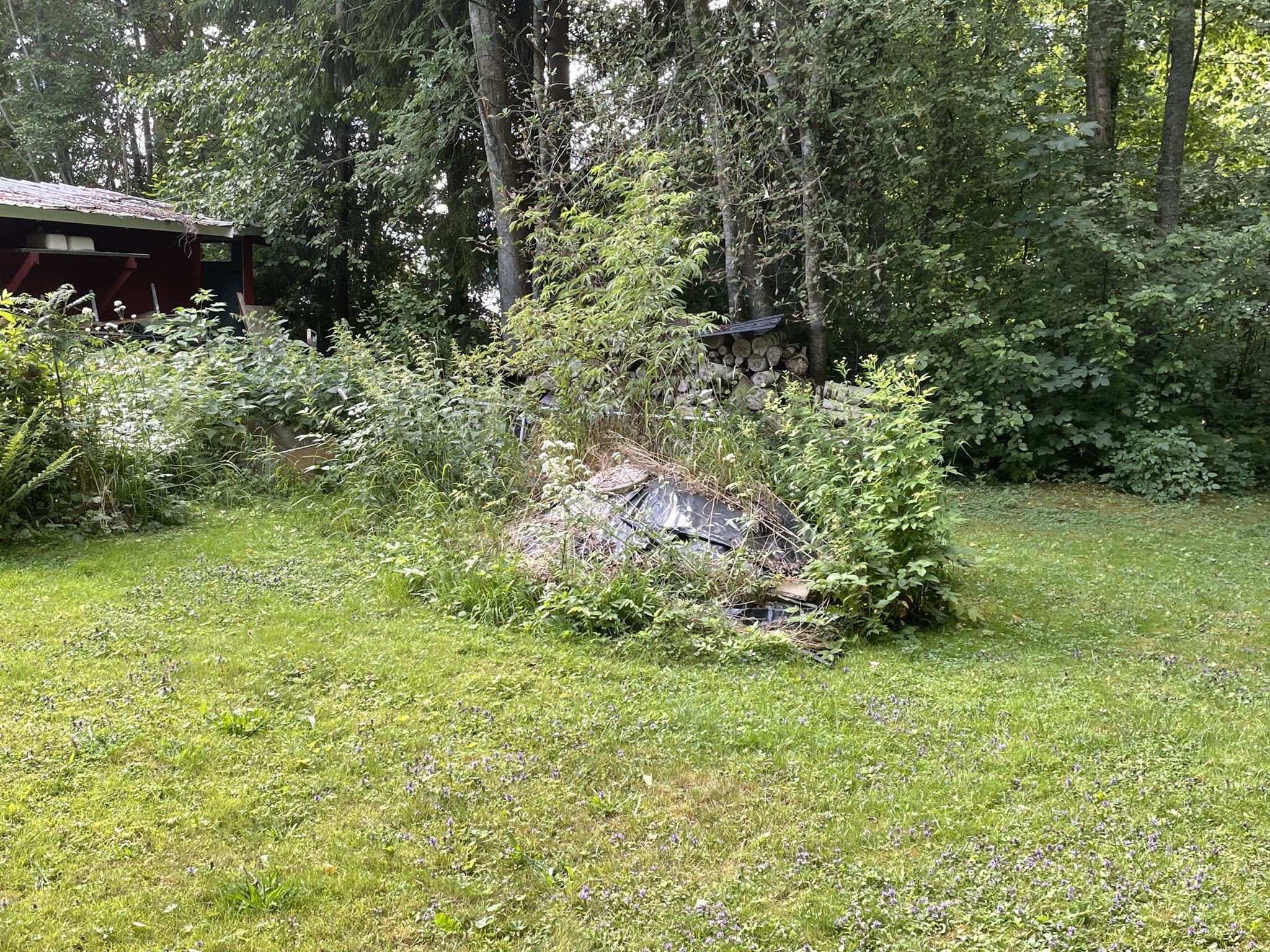 Efter den insatsen fortsatte jag det jag påbörjade på semestern nämligen att återta lite mark som växt igen under de senaste åren. Klippte bort småträd och drog upp tistlar och brännässlor i den inre delen av tomten samt vid komposten. Efter dryga två timmar kände jag mig nöjd. Det finns fortfarande en hel del kvar men det får anstå till en annan helg.